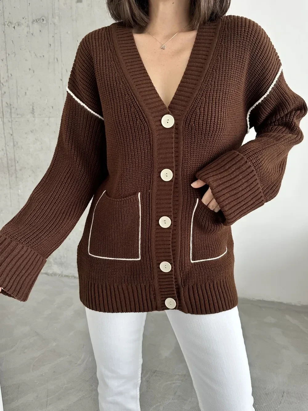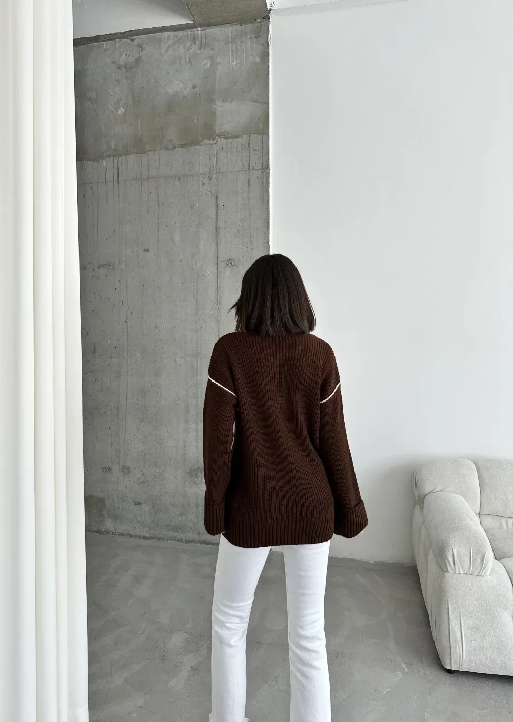 Dit bruine vest in One Size biedt de perfecte mix van comfort en stijl. Het heeft de zachte uitstraling van een trui, maar met de knopen in het midden krijgt het een vestachtige flair. De subtiele witte streepjes voegen een moderne, verfijnde touch toe. Het ademende materiaal en de relaxte pasvorm zorgen voor ultiem comfort, terwijl het vest zich moeiteloos aanpast aan verschillende lichaamstypes. Perfect voor een casual, maar toch chique look!