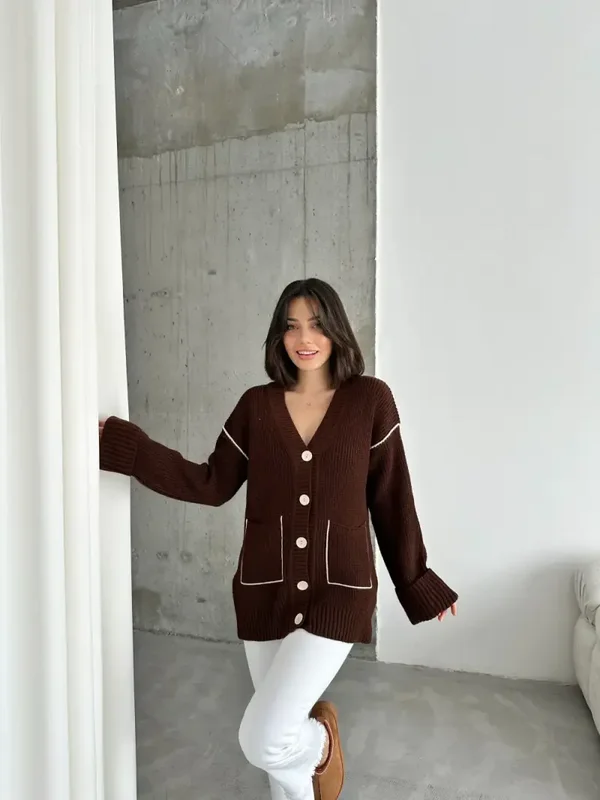 Cinnamon Trui met witte knopen